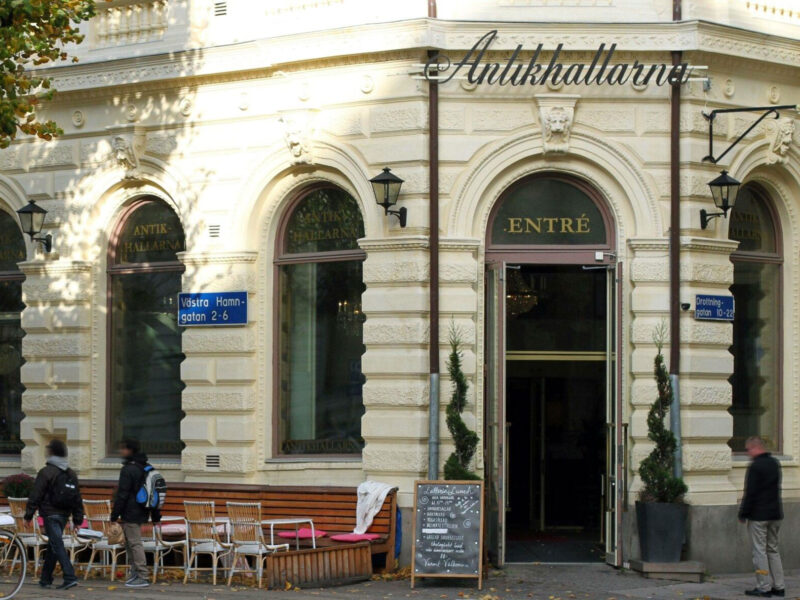 Latterian har även gott om veganska och glutenfria alternativ. Om byggnaden Huset som Antikhallarna huserar i uppfördes på uppdrag av dåvarande Skandinaviska Kreditaktiebolaget som ett bankpalats. Arkitekterna Axel och Hjalmar Kumlien ritade huset i nyrennässansstil med romerska förebilder.