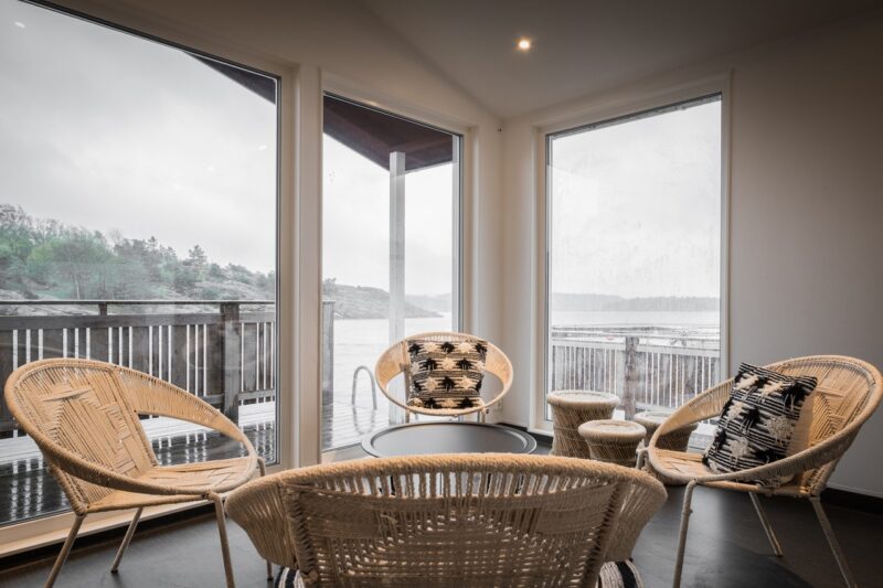 Här, med de stora ljusa fönstren och badstegen på bryggan upplever du närheten till havet på riktigt. Året runt oavsett väder, vind eller utomhustemperatur. Det är något visst med kombinationen av ett dopp i havet och ett bastubad.