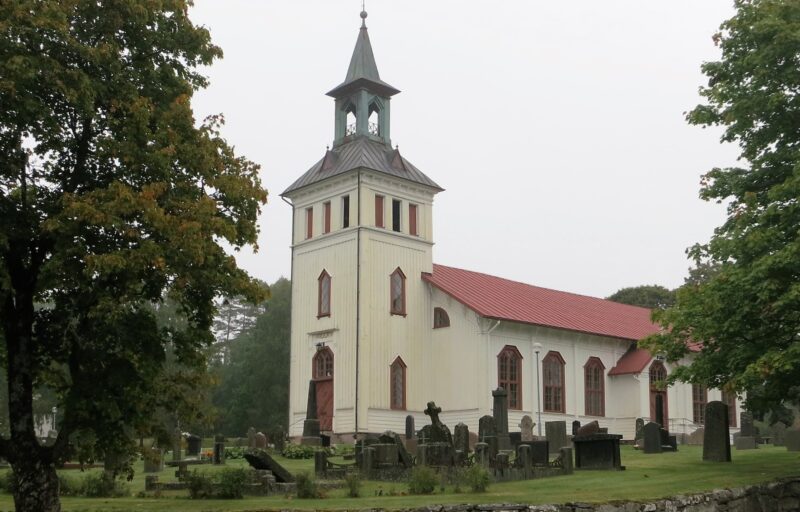 I minst 800 år har det det stått en kyrka här, på kullen mot Ätran. År 1688 byttes kyrkan ut första gången, den stod till mitten av 1800-talet då man byggde den som står kvar idag.