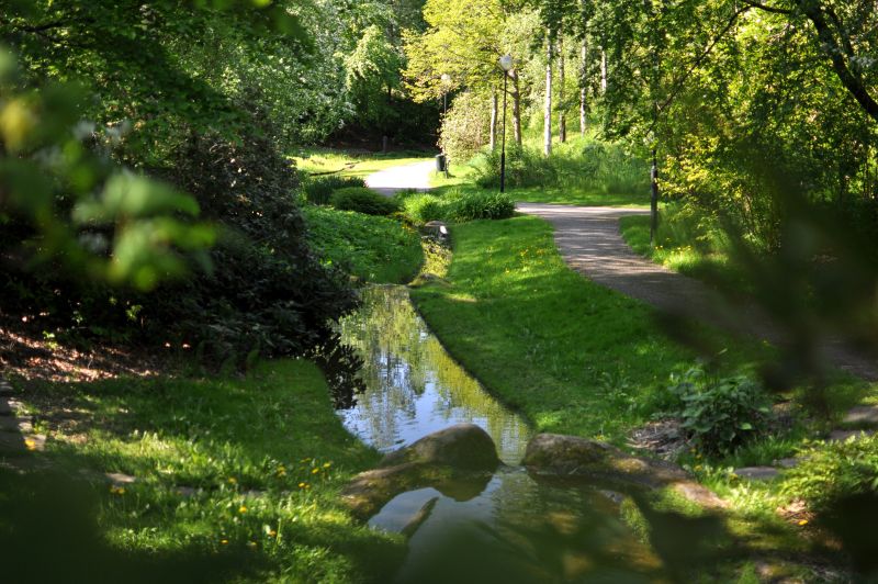 I parkens södra ände står den K-märkta kiosken från 1946 ritad av Åke Porne. Den utformad som ett litet sexsidigt ’koppartält’, med blå-gulrandig plåtbeklädnad. I Ekmansdalen står även skulpturen Rådjuret av Arvid Knöppel som tidigare fanns i Tingshusparken men flyttades för att göra plats åt en ny fontän.