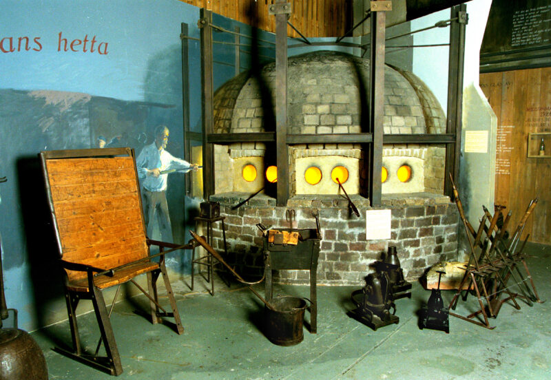 Svensk industrihistoria 1862-1978. Bruksmiljö i arbete och fritid med hytta, handelsbod och arbetarbostad.
