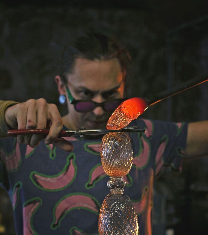 Handla handgjorda konstglas och bruksföremål i Glashyttan på Högbo Bruk.