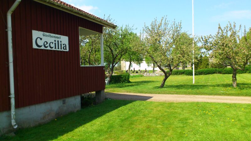 Gudhems Gästhem med vandrarhemsstandard vackert beläget vid Gudhems kyrka och medeltida klosterruin. På våren kommer tranorna till Hornborgasjön och Trandansen ligger bara några kilometer bort. Pilgrimsleden Falköping-Varnhem går precis förbi husknuten och det finns en trädgård med vacker utsikt över det historiska landskapet.