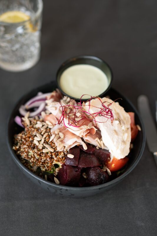 Vi lever för bra mat. Utan krångel och krusiduller. Hos oss kan du alltid vara säker att vad du än väljer från menyn så är det väl genomtänkt och bra för dig och din kropp. Vi lagar all mat från grunden och använder rena råvaror.