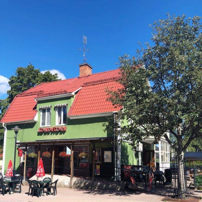 Klassiskt konditori med eget bageri, mjukglassförsäljning och uteservering på sommaren. Ett mysigt och anrikt familjeföretag där man kan köpa sig en god kopp kaffe och något gott att äta till.Här finns bakelser, vetebröd, småkakor, smörgåsar, och du kan givetvis beställa tårtan till ditt kalas! Rullstolsramp finns.