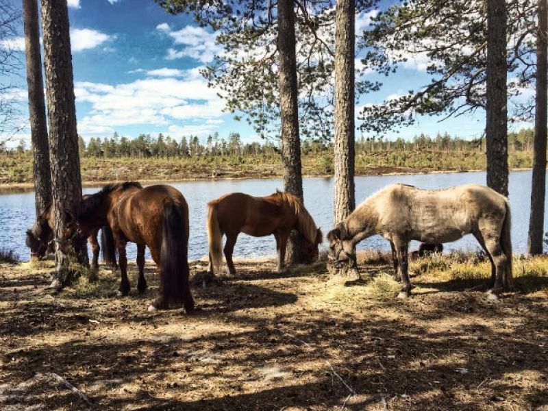 Ponnyridning för barn på snälla och trevliga islandshästar där du rider en slinga i skogen.Hjälm finns att låna.
