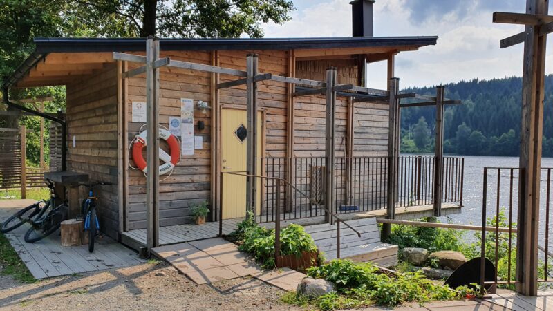 Bastu öppen för alla endast några centimeter från Dalslands Kanal och även en mötesplats för de som tycker om att bada bastu.