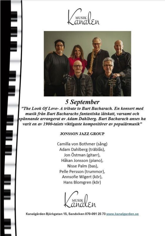 ”The Look Of Love" - A tribute to Burt Bacharach. En konsert med musik från Burt Bacharachs fantastiska låtskatt, varsamt och spännande arrangerat av Adam Dahlberg. Burt Bacharach anses ha varit en av 1900-talets viktigaste kompositörer av populärmusik”