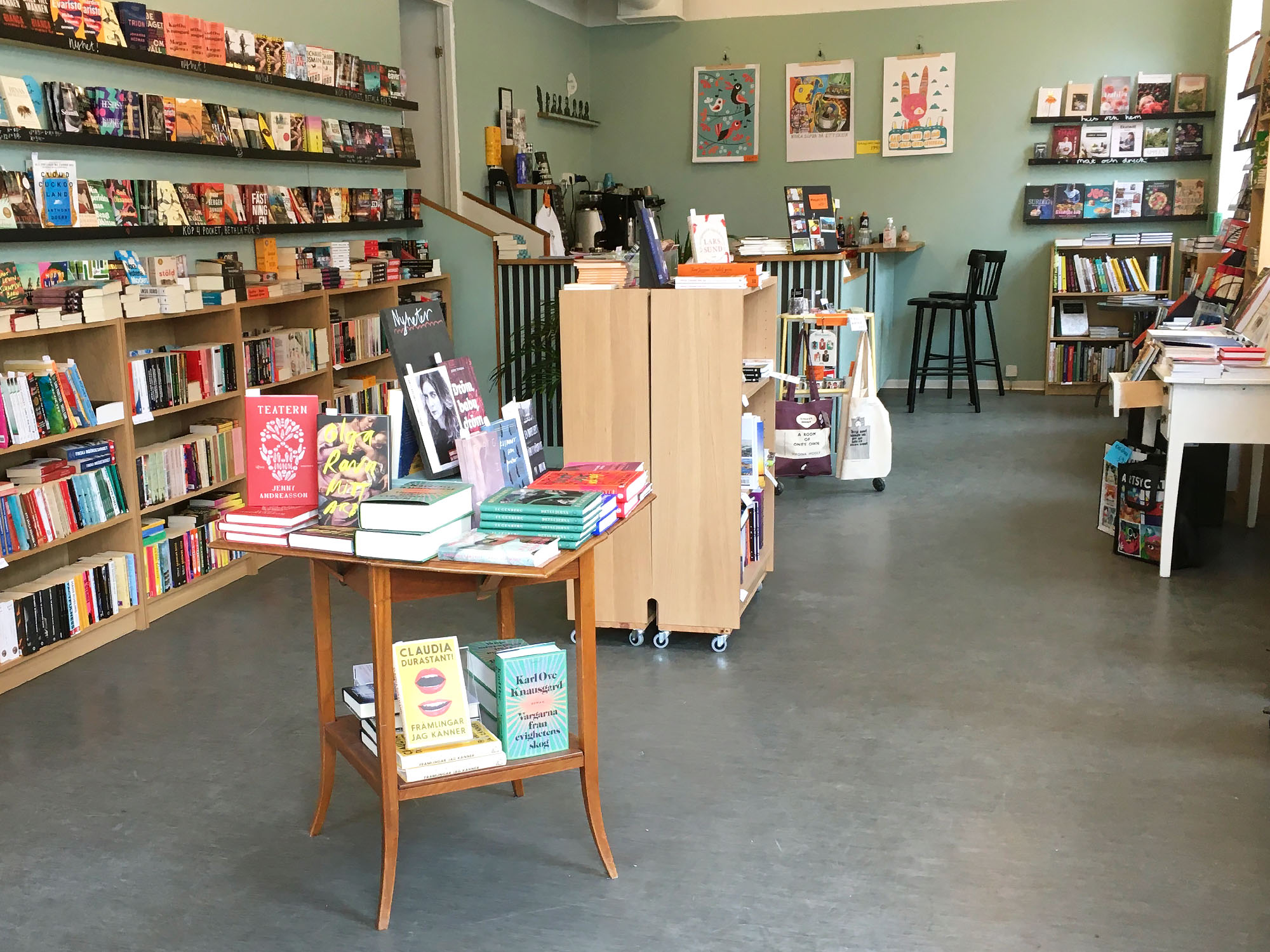 I butiken på Allmänna vägen finns böcker för vuxna och barn, och man kan slå sig ner med en kaffe i mysig miljö. Det ordnas också författarkvällar och bokcirklar i butiken.