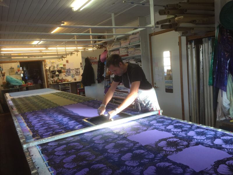 I Tanum, Kolmyrarna, några kilometer söder om Grebbestad hittade Malin för trettio år sedan den perfekta platsen för hennes textiltrycksverkstad.
