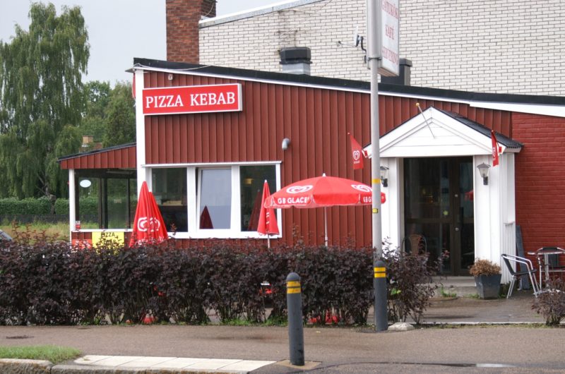 Pizzeria och gatukök invid E45 med serveringsplatser inomhus och utomhus.