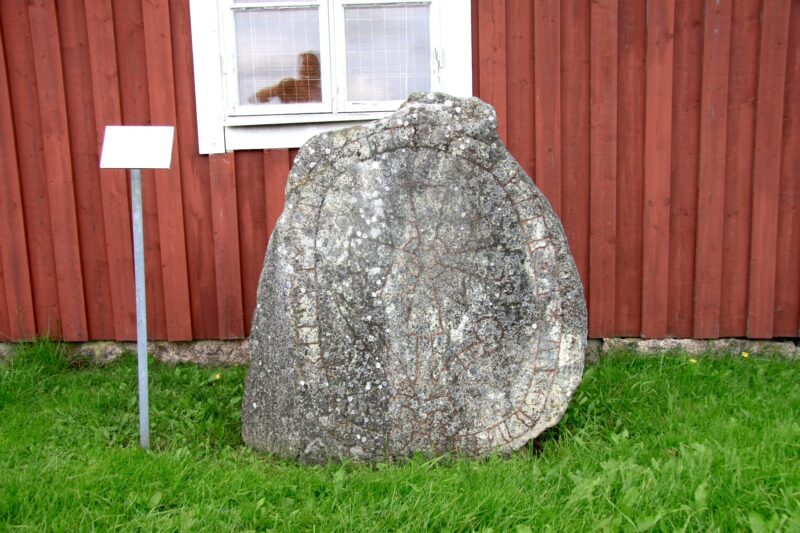 Invid vägen står en stor korsprydd runsten som berättar att Frögärd rest stenen efter sin man Igul.
