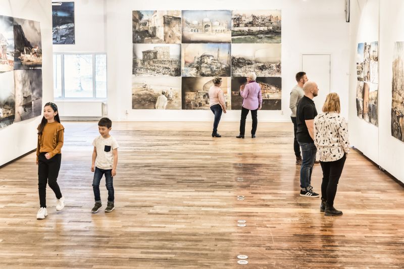 Den populäre konstnären har fått förfrågningar från många håll, men fattade själv tycke för Sandgrundsbyggnaden som ligger mitt i ett kulturstråk, nära centrum och i en vacker naturmiljö. Konsthallen ligger granne med Värmlands Museum och Sandgrundsparken och här finns en butik med ett utbud av vykort, affischer och böcker som enbart finns på konsthallen. Det finns också ett café som är öppet alla dagar då konsthallen är öppen och sommartid en uteservering med vacker utsikt över Klarälven.