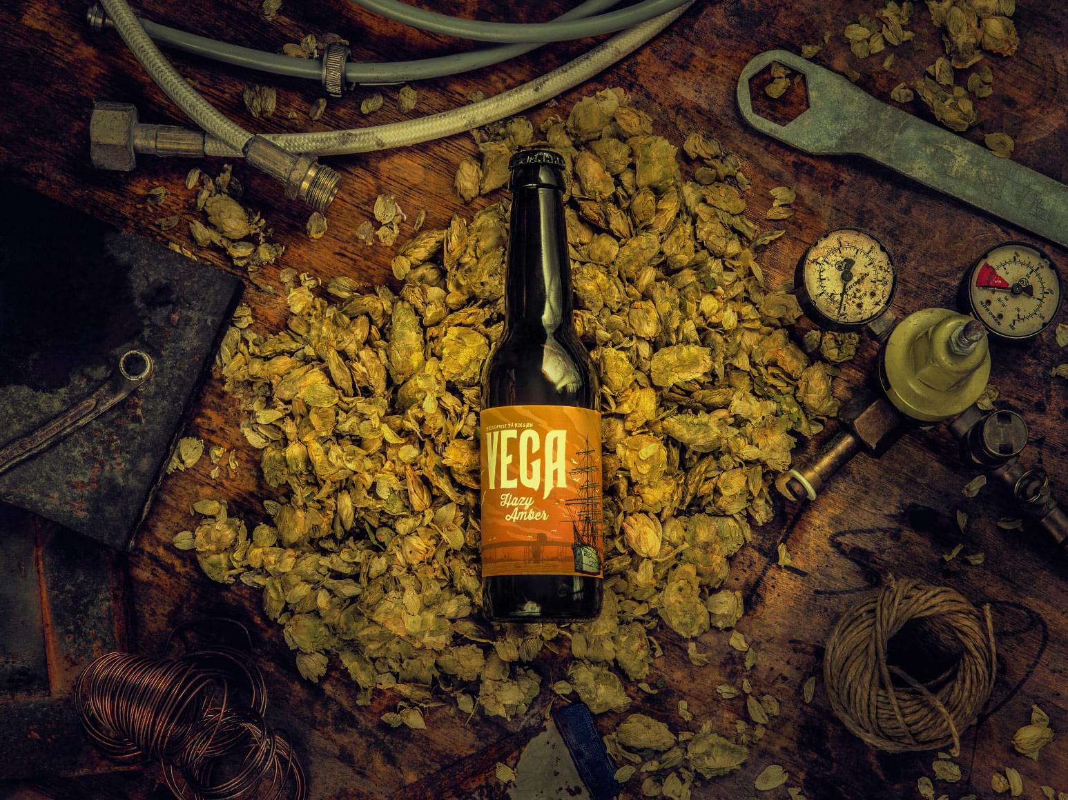 Humligt, fruktigt, knäckigt, krispigt, friskt och blommigt – och Göteborgskt. På Vega Bryggeri bryggs olika produkter, allt från ljus lager till mörk materia. Bryggeriet har även en restaurang med rökt mat i alla former och många öl att smaka från kran.