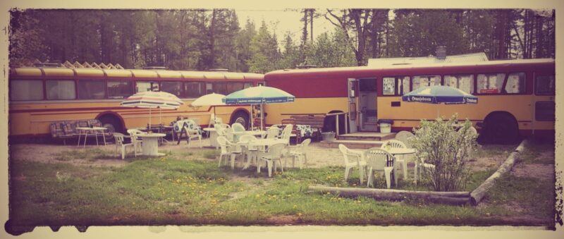 Vinnersjös Diversehandel består av två gamla Scaniabussar från -66. Den ena är det café i och i den andra finns en liten butik där vi blandat nytt med begagnat.